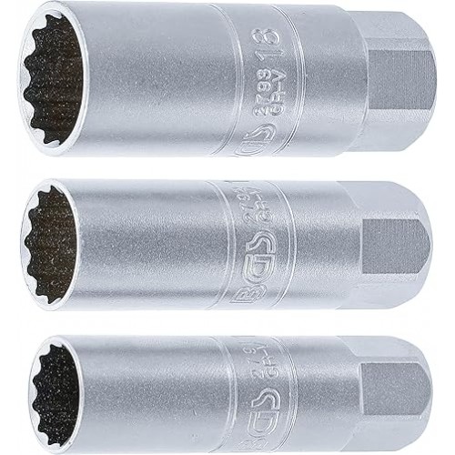 Låda 3: Hylsnyckel sats i milimeter med 1/4 och 1/2 tums hylsor i sex kant , två stycken tätstegade spärr skaft med diverse förlängare. 1/4 hylsbits i insex och Torkx storlekar.